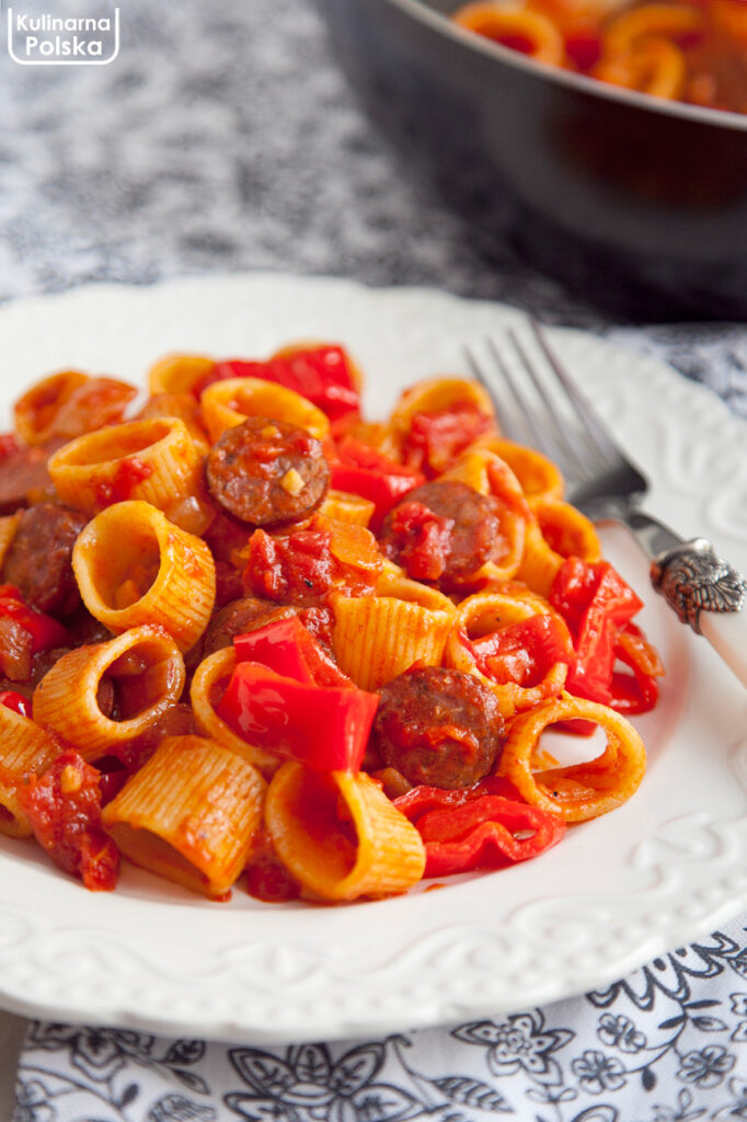 Makaron z warzywami i kiełbasą