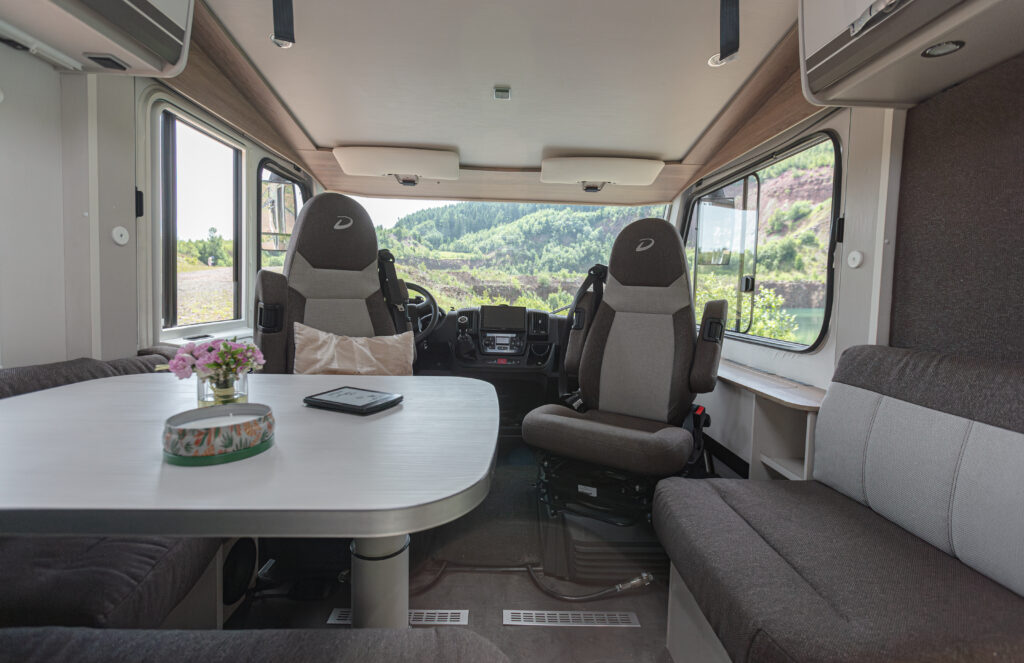 - duży stół z 5 miejscami (fotele kierowcy i pasażera obrotowe),